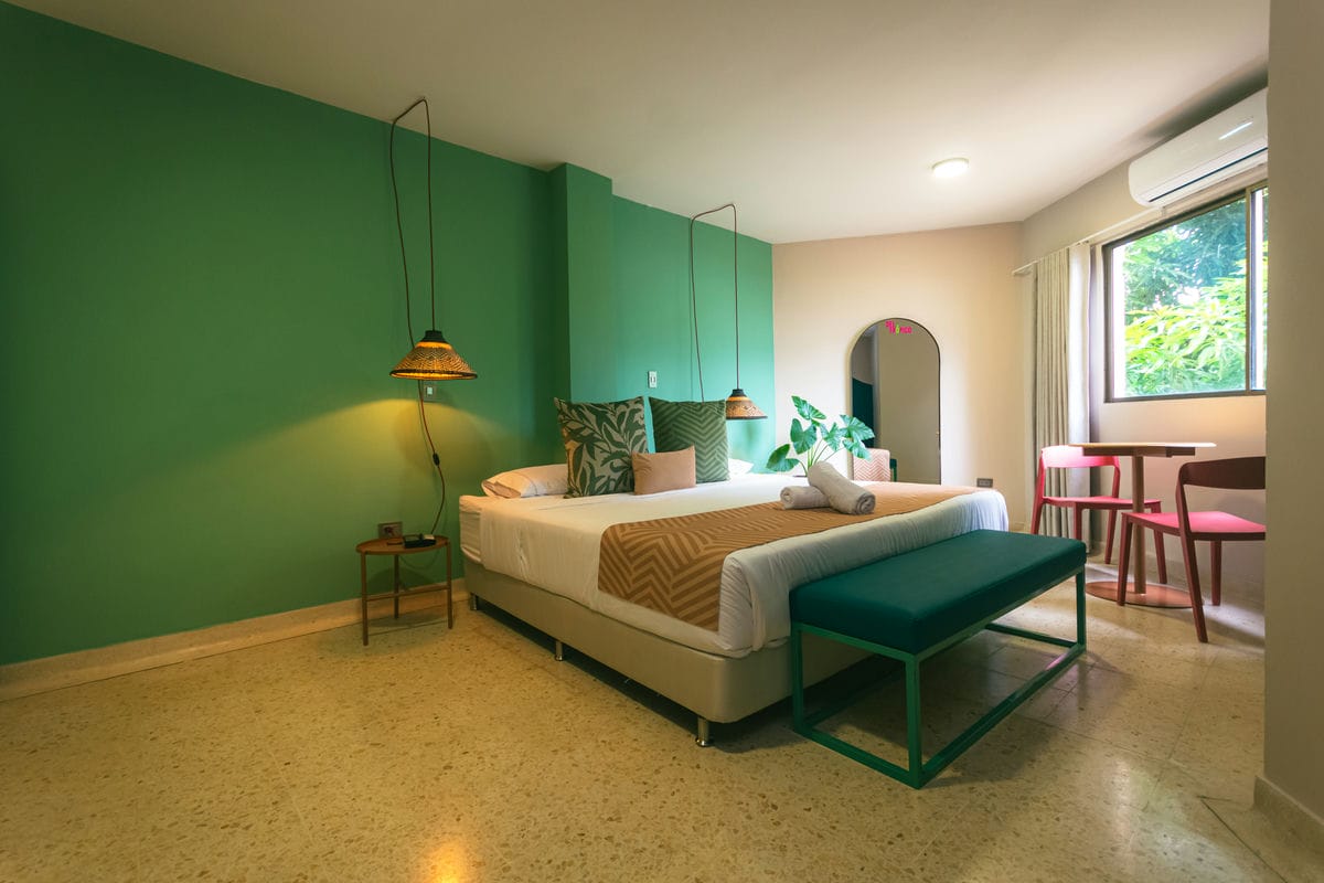 Con una vista directa a nuestra piscina, esta habitación ofrece un ambiente relajado y cómodo, ideal para quienes desean descansar con vista al corazón del hotel. Cuenta con aire acondicionado, agua caliente, televisión pantalla plana, toallas, batas de baño y amenidades de lujo.