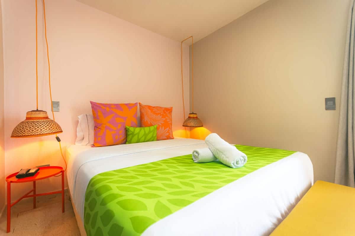 Ideal para parejas o viajes en compañía, esta habitación ofrece un ambiente sereno y acogedor que combina diseño funcional con detalles de confort. Equipada con aire acondicionado, agua caliente, televisión pantalla plana, toallas, batas de baño y amenidades de lujo, es perfecta para descansar después de un día bajo el sol tropical.
