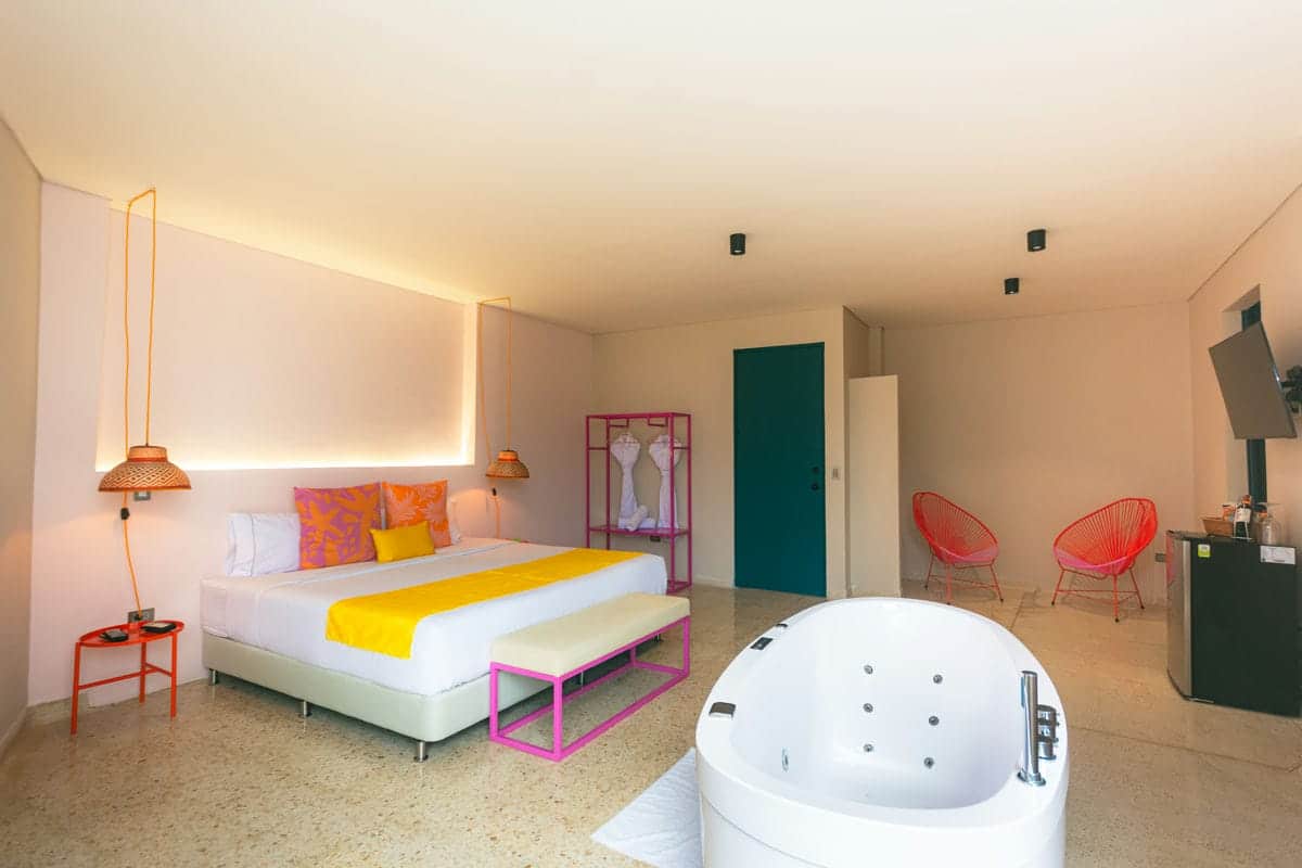 Más espacio, más privacidad y una vista privilegiada a la piscina hacen de esta suite una opción ideal para quienes buscan una experiencia superior. Disfruta de aire acondicionado, agua caliente, pantalla plana, toallas afelpadas, batas de baño y amenidades de lujo en un entorno elegante y relajante.