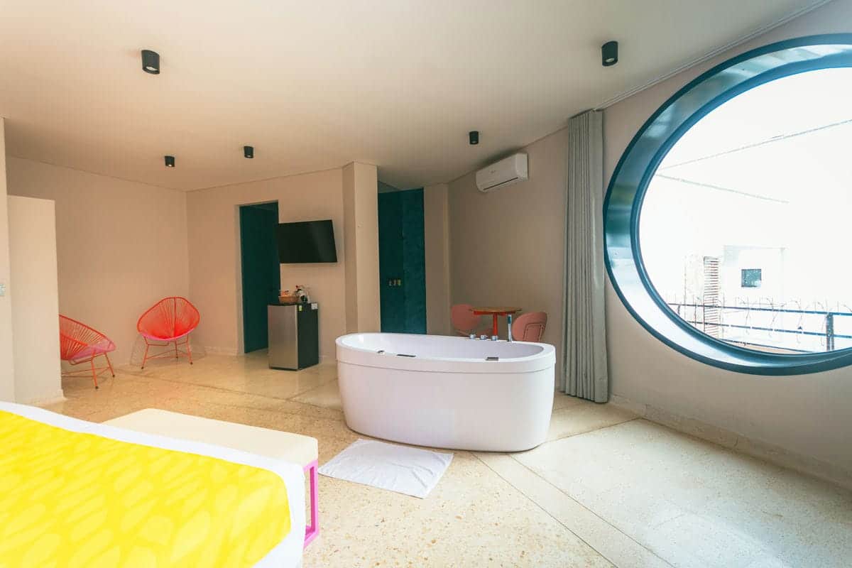 Nuestra suite más exclusiva, diseñada para momentos únicos. Disfruta de un jacuzzi privado, ambientes amplios y una atmósfera de lujo pensada para el descanso total. Incluye aire acondicionado, agua caliente, televisión pantalla plana, toallas premium, batas suaves y amenidades de lujo.