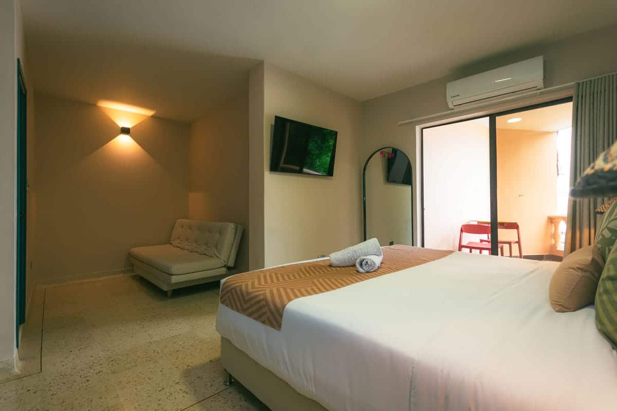 Diseñada para quienes disfrutan del aire libre y la tranquilidad, esta habitación cuenta con un balcón privado que invita a relajarse y conectar con el entorno natural. Incluye cama matrimonial, aire acondicionado, agua caliente, pantalla plana, toallas, batas y amenidades de lujo.